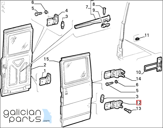 Bisagra inferior de la puerta trasera derecha de: